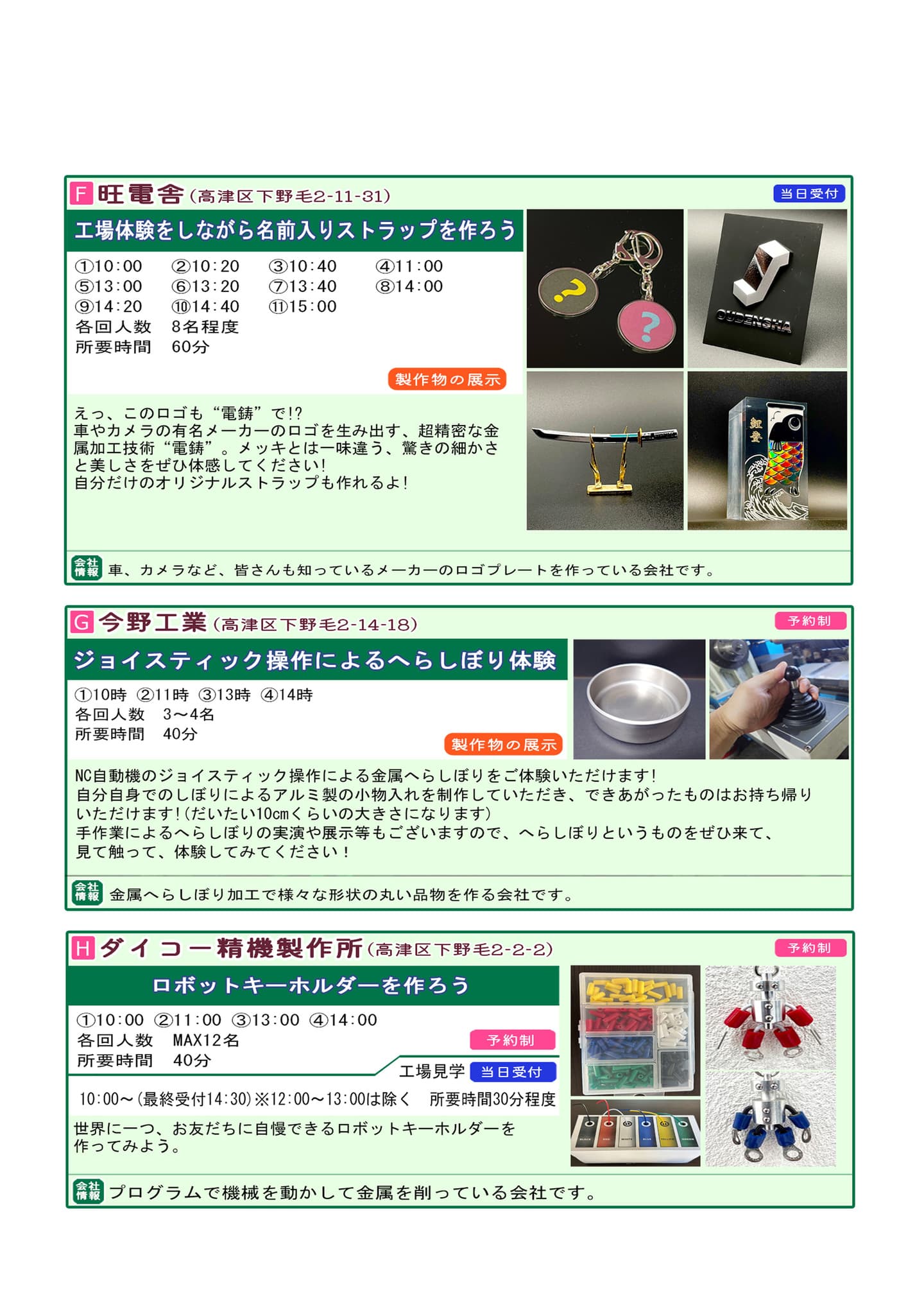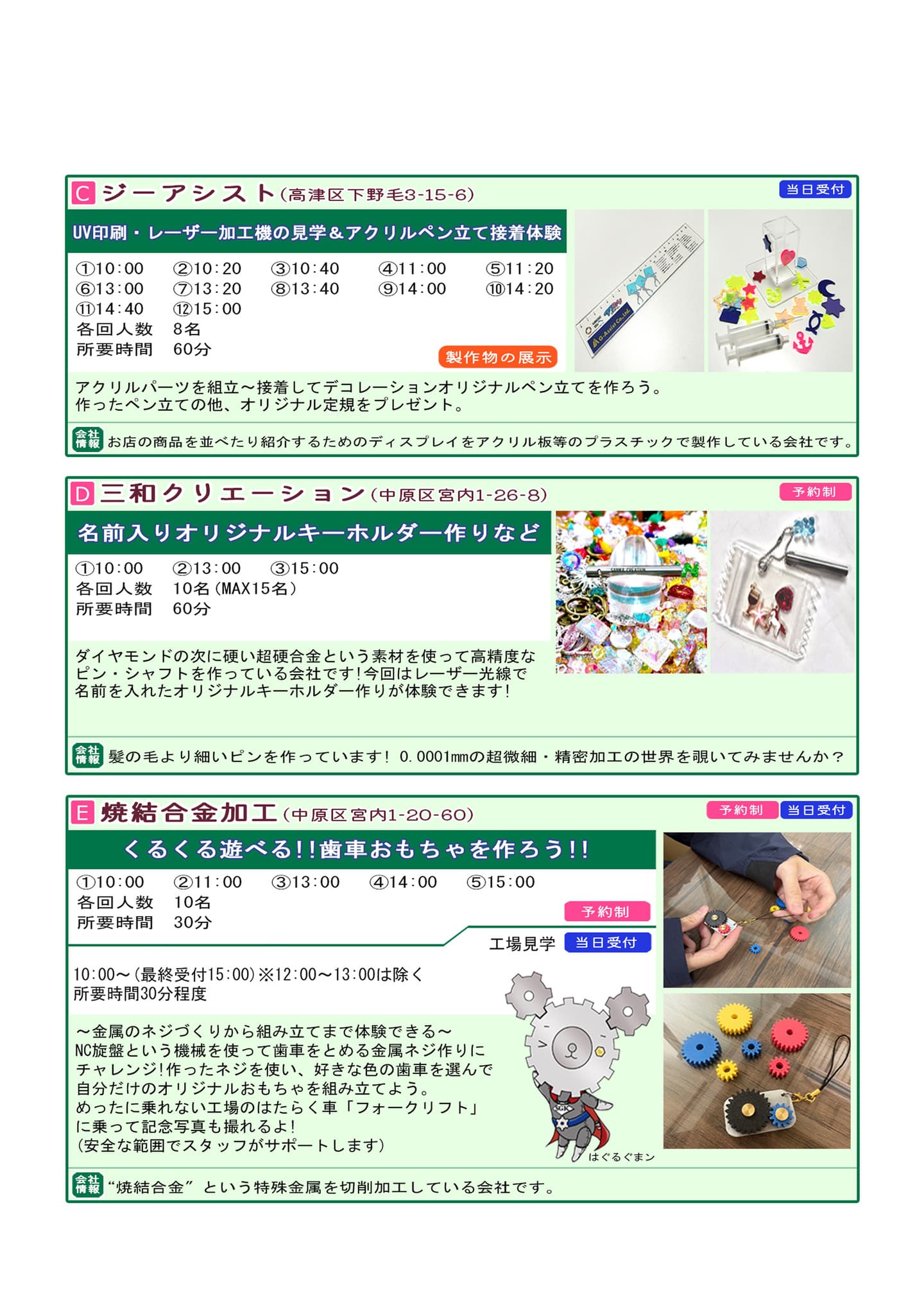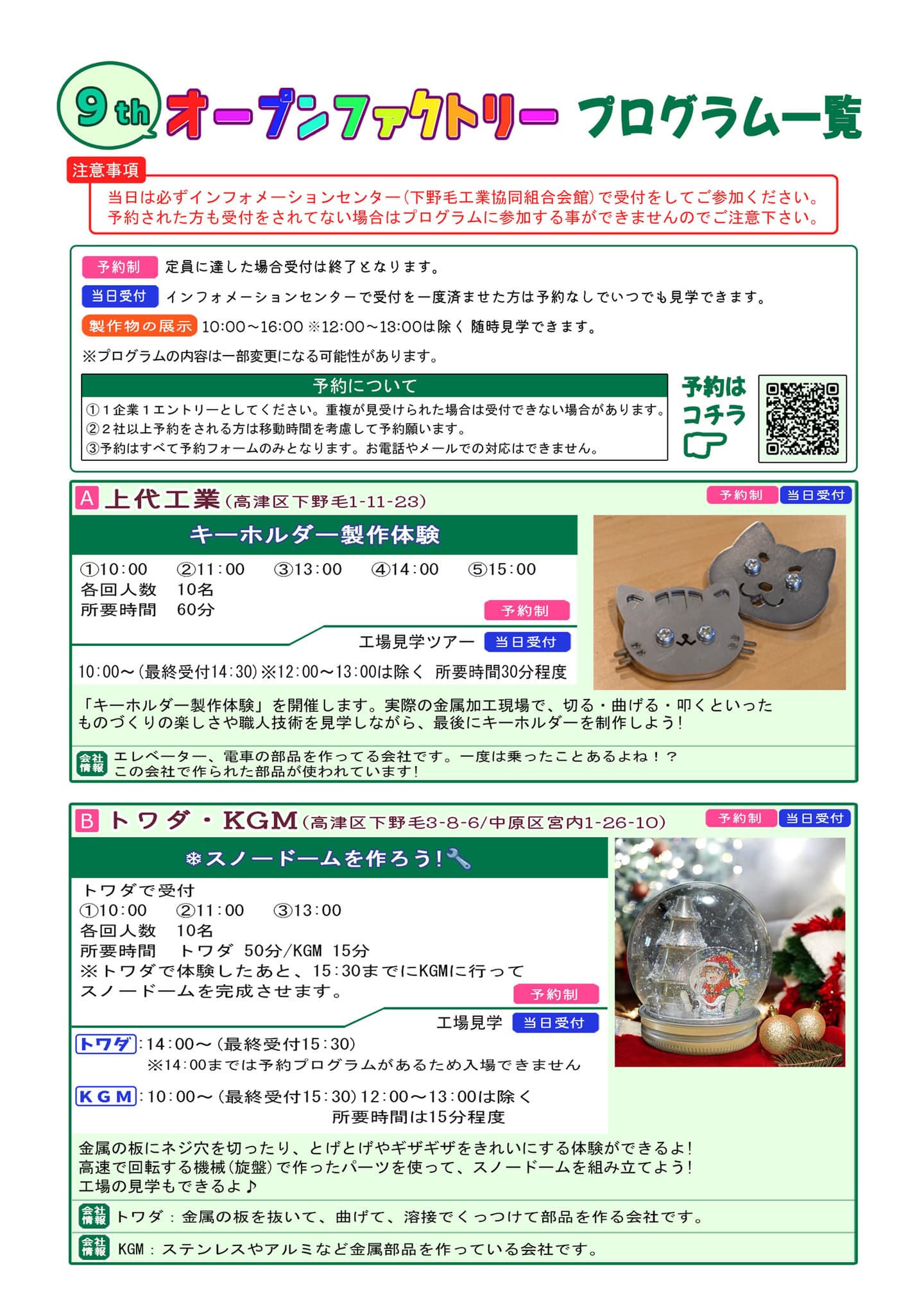 今年も体験、展示、合同企画と盛りだくさんなので、